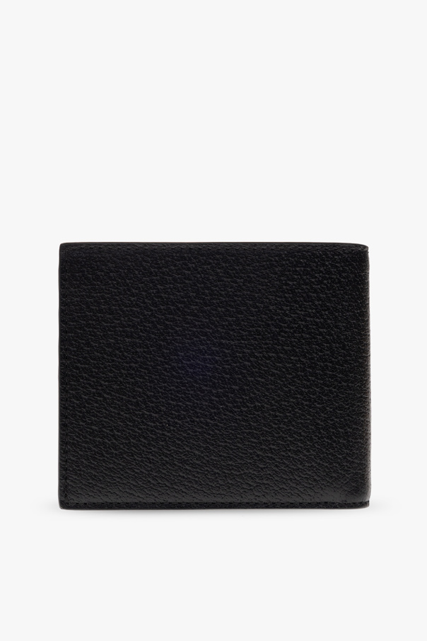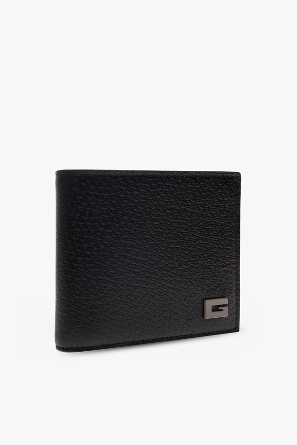 Black bi-fold wallet from Gucci. Made of leather, this item showcases a silver-tone logo plaque on the front and a grey-clad interior with two bill compartments, two slip pockets and eight card slots.