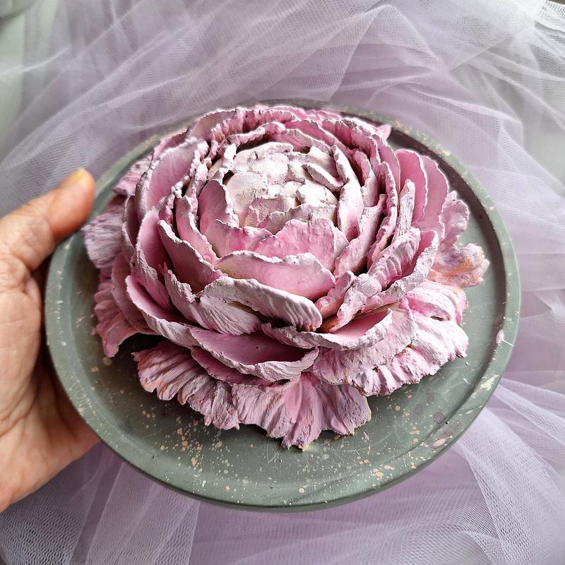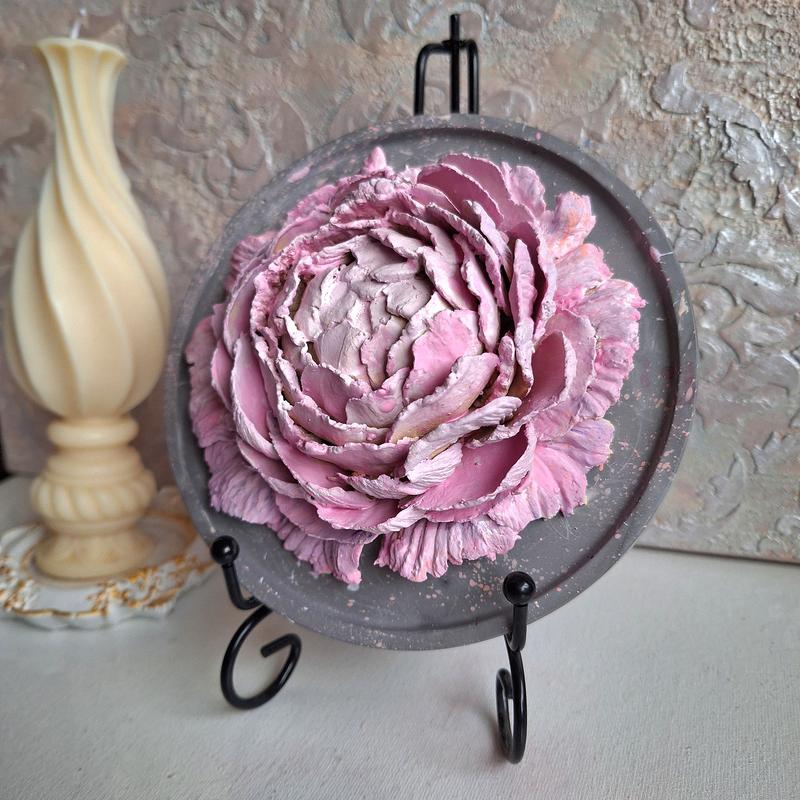 Объемный шикарный розовый пион размещен на серой основе, слитой со скульптурного бетона (на вид как керамика, но прочная)Эта маленькая картина-панно станет прекрасным украшением Вашего дома или подарком близкому человеку.