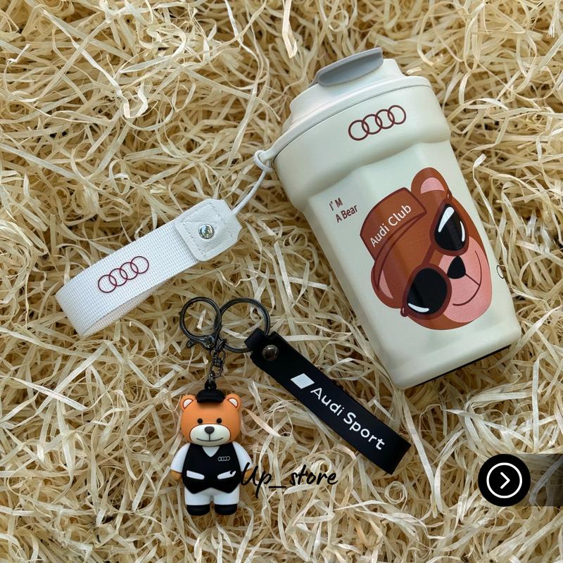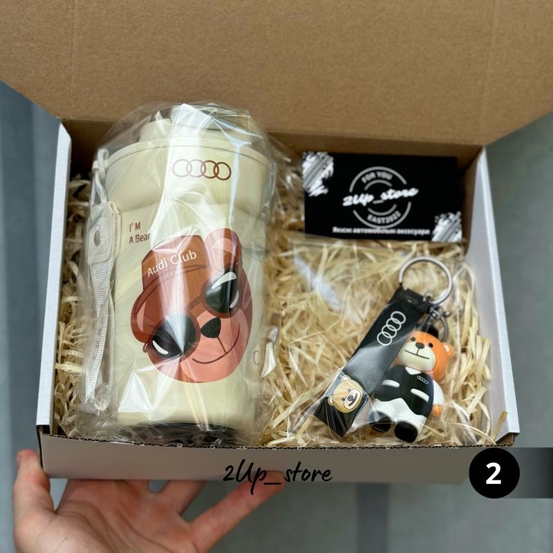 стиль, качество и комфорт.Набор объединяет два стильных аксессуара, которые непременно станут вашими любимыми спутниками в повседневной жизни. Незаменимая термокружка с логотипом и милым мишкой поможет вам сохранить тепло вашего любимого напитка, а брелок в виде мишки, придаст очарования вашим ключам или сумке.