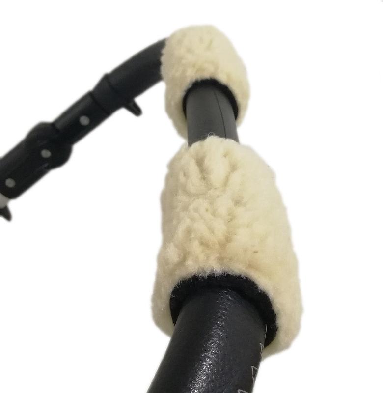 - В комплекте идут 2 манжетика прихватки, которые на липучке одеваются поверх ручки коляски, а уже следом сверху одеваются сами муфты рукавички. Тем самым рука мамы не контактирует с холодной ручкой коляски и всегда находится в тепле.