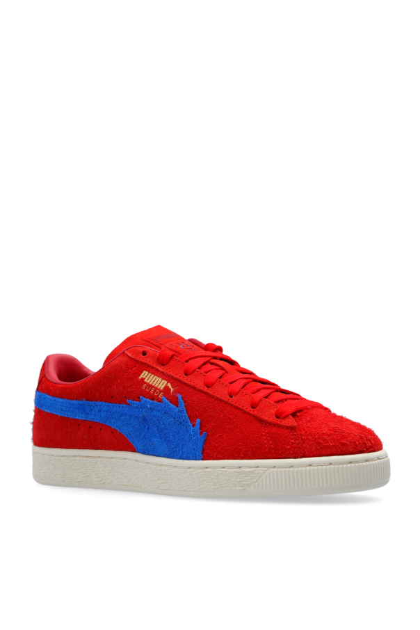 Introducing the \'SUEDE X ONE PIECE\' sports shoes by Puma, a fusion of classic elegance and spirited dynamism that redefines athletic footwear. Crafted with a luxuriously soft suede exterior, these shoes boast a vibrant red hue complemented by striking blue accents on the side panels, embodying both sophistication and sporty flair. The iconic Puma logo adorns the side and tongue of the shoe, asserting its authenticity and heritage. The blue elements against the red suede create a visually compelling contrast, infusing the design with energy and movement. A creamy rubber sole provides a beautiful counterbalance, enhancing the overall aesthetic appeal. Additionally, the tongue features a unique graphic element, hinting at the \'ONE PIECE\' theme, which lends an exclusive touch to this line. Designed for both everyday wear and street fashion, these sneakers offer versatility without compromising on style. The interior, crafted from a blend of fabric and synthetic materials, ensures comfort and durability, making these shoes a practical choice for the discerning fashion enthusiast. Why Purchase This Product? Elegant suede construction with vibrant color contrast Exclusive \'ONE PIECE\' design elements Authentic Puma branding, affirming quality and prestige Comfortable and durable, suitable for daily use and street fashion A unique blend of traditional elegance and contemporary style