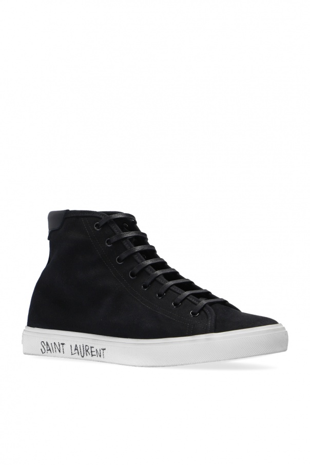 Black sneakers from Saint Laurent. Featuring a cotton upper, this high-top design is complete with lace-up fastening and logo details.