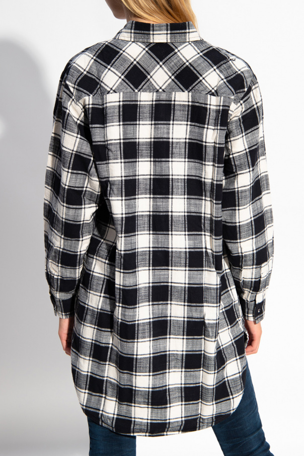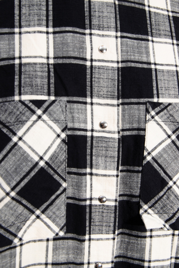 Black and cream oversize shirt from Diesel. Fastened with snaps, this cotton-crafted design features a check pattern, two front pockets, silver-tone metal hardware and long sleeves with snap-fastened cuffs.