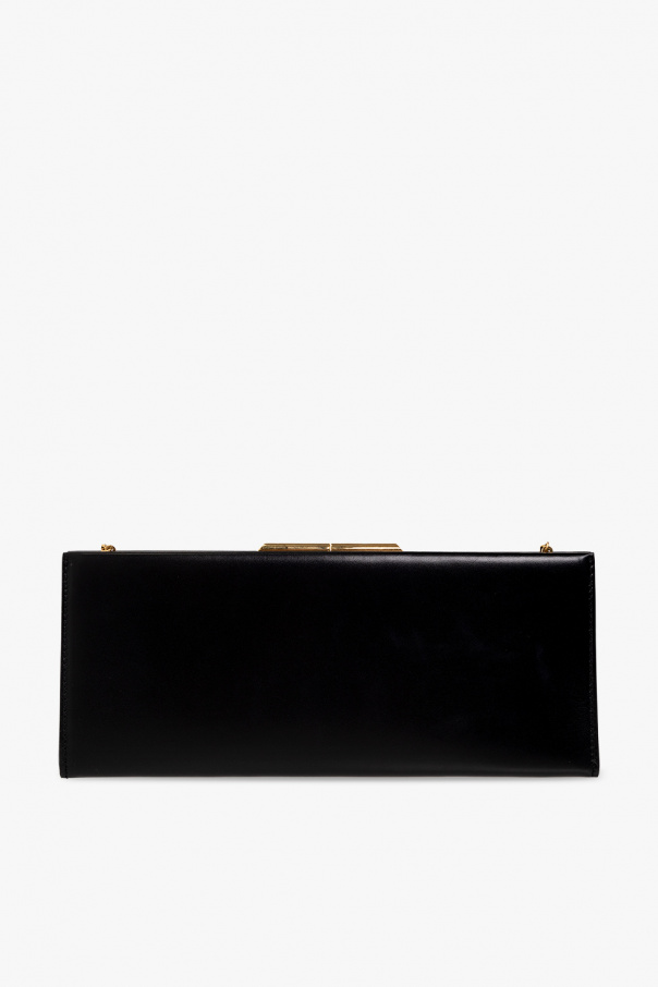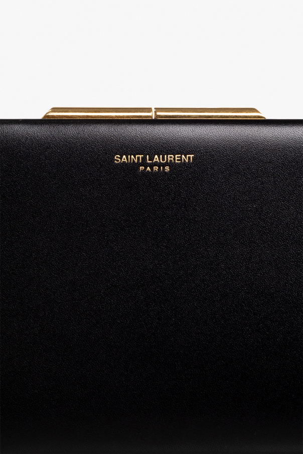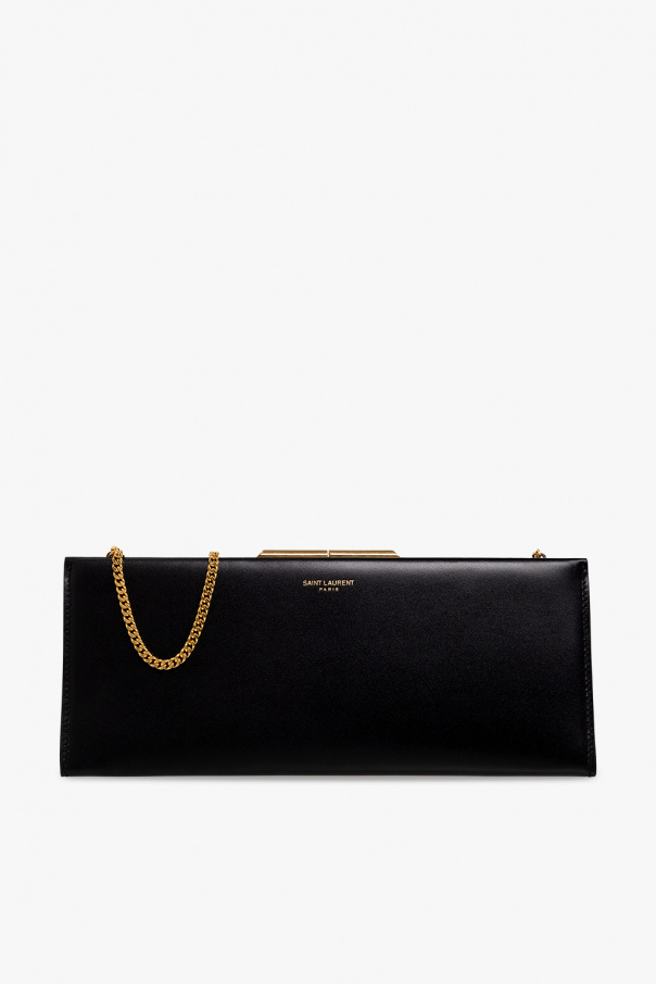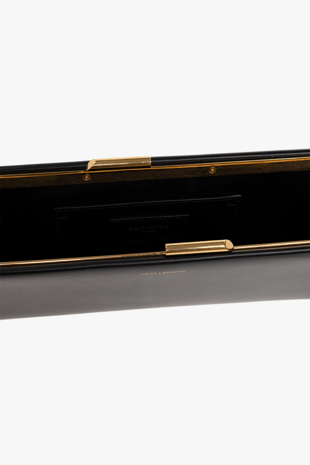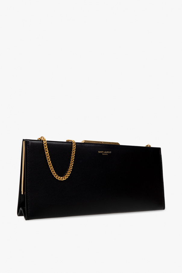 Black ‘Midnight Small’ clutch from Saint Laurent. Crafted from calf leather, this design secures with a magnetic snap and features an embossed logo on the front, gold-tone metal hardware and one internal compartment with a slip pocket.