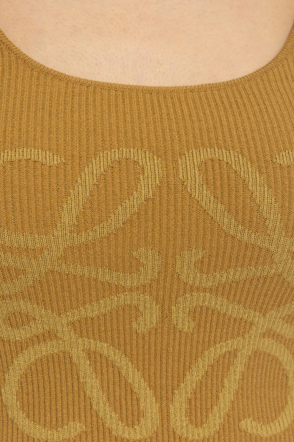 Light brown tank top with a round neck from Loewe x Paula’s Ibiza. Crafted with a ribbed knit, this style features an embroidered Anagram on the front and ribbing on the hem.