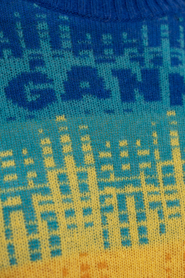 Multicolored sweater from Ganni. Crafted from a blend of wool and recycled textile, this design is enriched by a pattern, logo embroidery and ribbed trims at the crew neck, hem and cuffs.