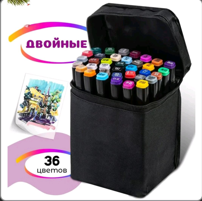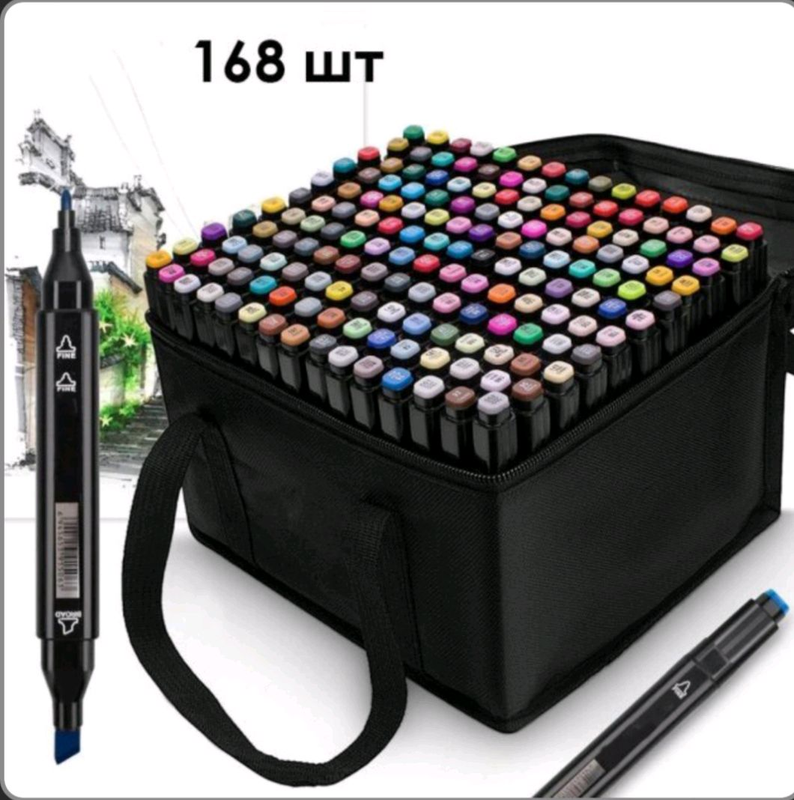 Сумка-чохол для маркерів.👜Маркери для малювання та скетчів у пластиковому футлярі. Двосторонні, на спиртовій основі. Основна палітра оптимально підібрана для малювання всіх стилів.
