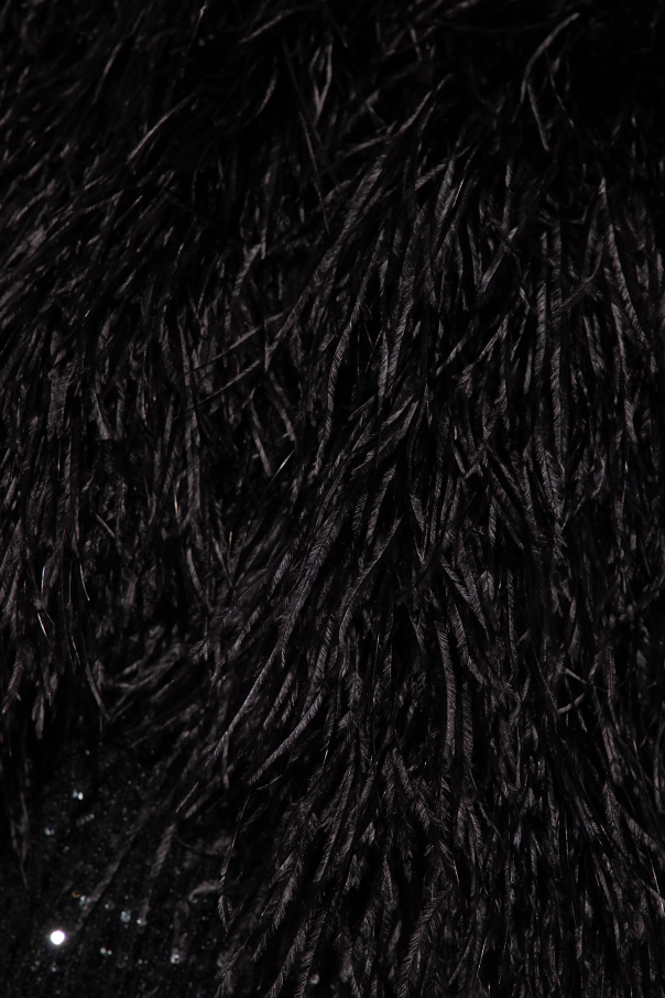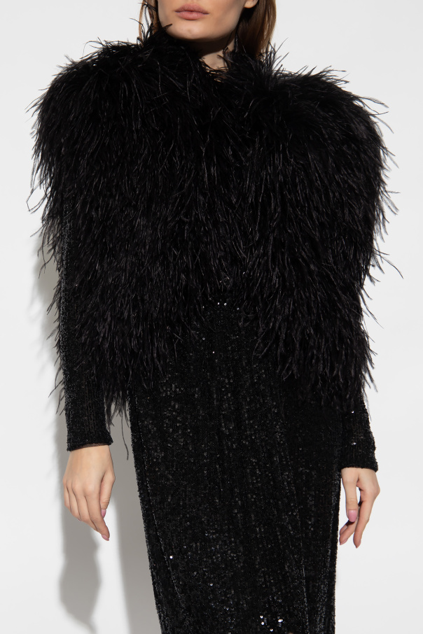 Black vest from Dolce & Gabbana. Crafted from turkey and ostrich feathers, this cropped design features a black lining.