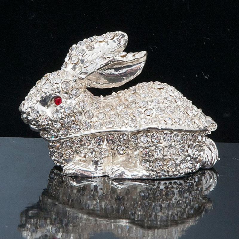 Шкатулка Кролик сделана из металла, покрытого эмалью, украшена множеством