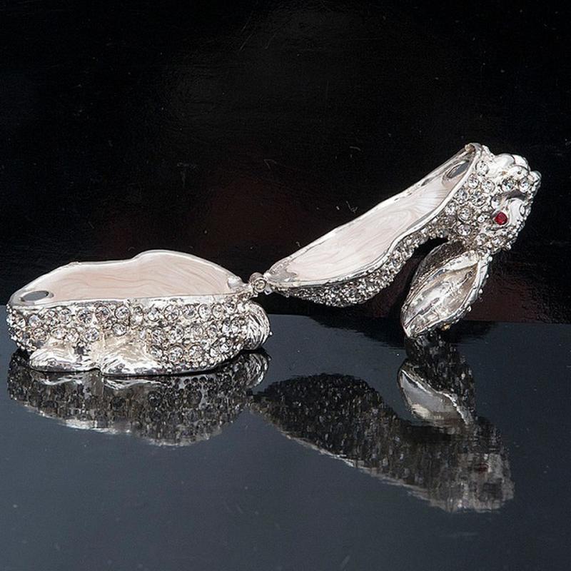 стразов. Шкатулка легко открывается. Внутренняя часть также покрыта эмалью.