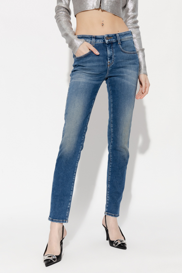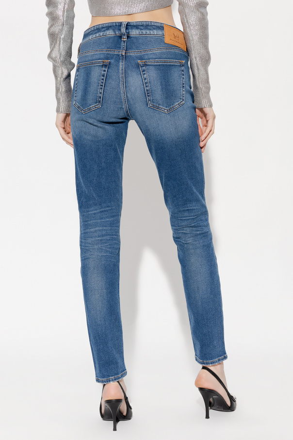 Dark blue ‘D-OLLIES’ jeans from Diesel. Made of soft Joggjeans®, this pair is complete with a zip and button closure, five slip pockets, tapered legs and vintage effect.