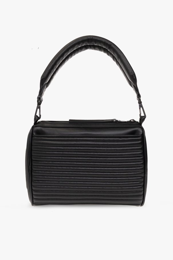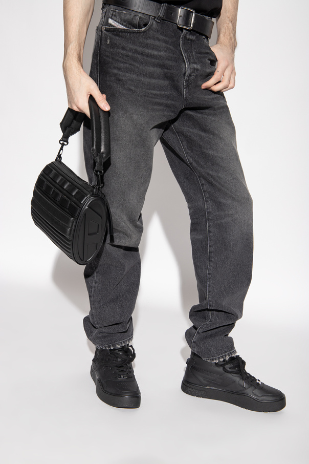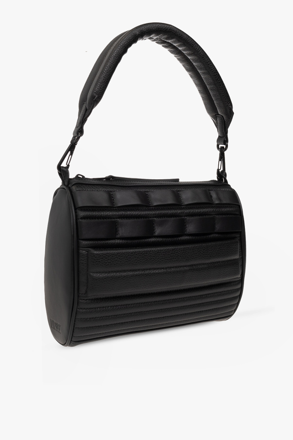 Black \'ODD\' shoulder bag from Diesel. Crafted from leather, this design features a zip fastening, topstitched detailing, an embossed logo on the sides, a back handle and one internal compartment with a zip pocket. Comes with a detachable handle and an adjustable strap.