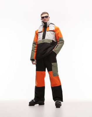 Topman Sno ski boarder trouser and jacket co-ord in colour block orange and blac