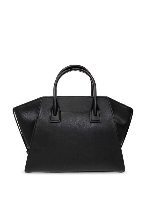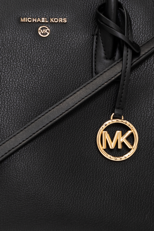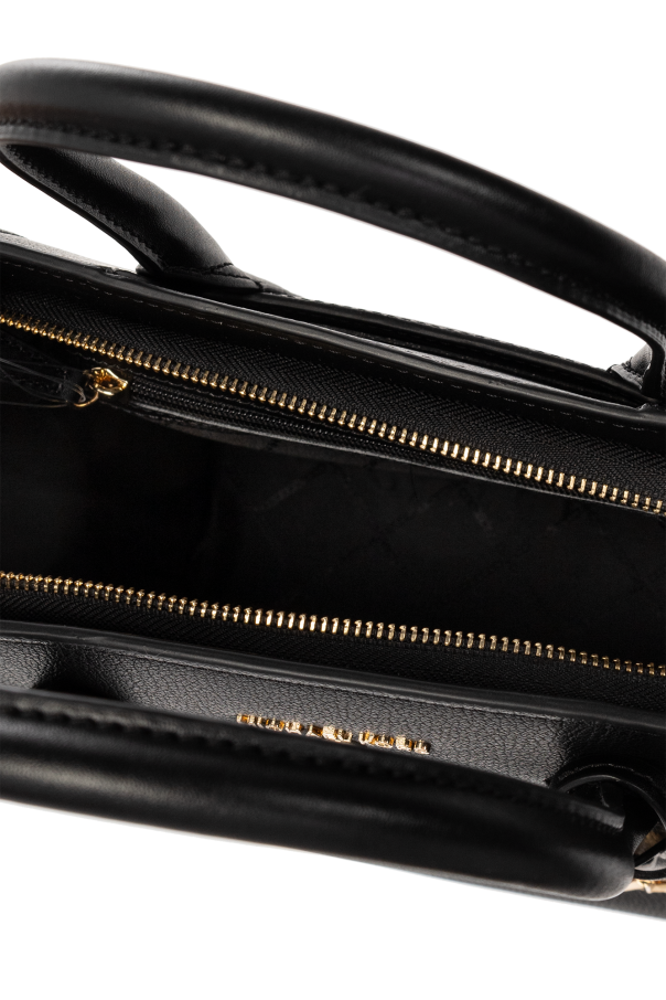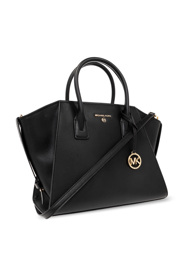 Black ‘Avril Large’ shoulder bag from Michael Michael Kors. Crafted from grained leather, this design secures with a zip and features a logo application on the front. It is complete with a detachable and adjustable shoulder strap, side adjusters, one back slip pocket, two half-round handles with a removable logo charm, gold-tone metal hardware and one internal compartment with two slip pockets and one zip pocket.