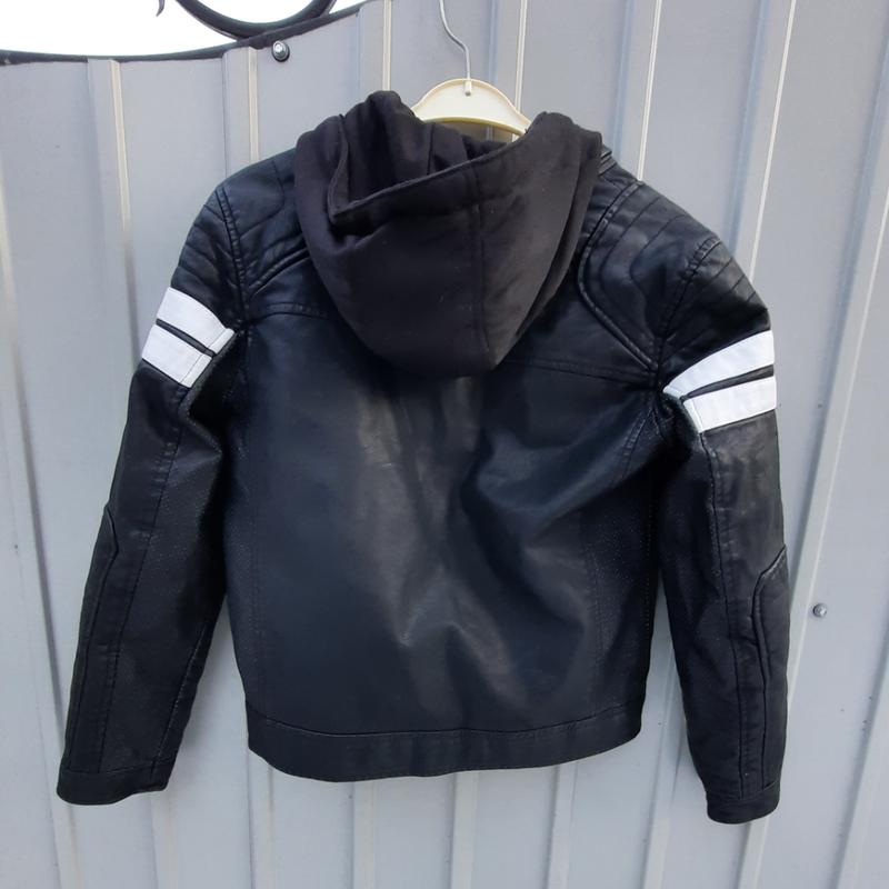 Стан новой, ношена, кожаная.Замеры:полуобхват груди-49см,плечи-40см,длина по спине-59см,без капюшона,длина рукавов-58см,длина внутреннего шва рукавов-44см,NYC,срост-158см,Street Product, верх -100%Lining Doublu Fter, подкладка-100 %polyurethane,капюшон-4%cotton,6%Viscose,made in Germany,Dusseldorf.