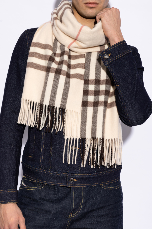Introducing the Cashmere Scarf with Fringe by the illustrious designer, Burberry. This exquisite accessory, woven from the finest cashmere, envelops you in warmth and sumptuous softness. The scarf features a distinctive plaid pattern in rich shades of brown, black, and red, set against a soft pink backdrop, embodying the quintessence of modern elegance and timeless style. Adorned with delicate fringes at each end, this scarf is more than a mere accessory; it is a symbol of sophistication and high fashion mastery. Whether draped over a coat or wrapped snugly around your neck, it seamlessly elevates any ensemble to new heights of chic refinement. Why Choose This Product? Luxurious 100% cashmere material for unmatched softness and warmth. Iconic Burberry design with a classic plaid pattern. Versatile accessory that complements a variety of outfits. Elegant fringed ends for added style.
