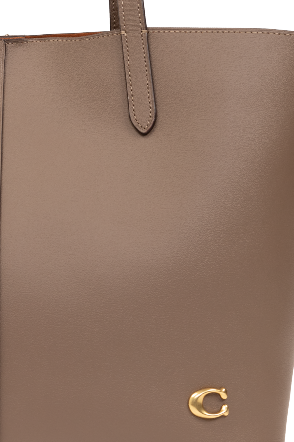 Introducing the quintessential expression of timeless elegance and functionality - the Coach Brown \'Shopper\' Bag. Crafted with meticulous precision from supple, high-quality cowhide leather, this bag stands as a testament to the luxury and craftsmanship synonymous with the renowned Coach brand. Its uniform medium brown hue exudes a sense of refined sophistication, making it an impeccable choice for both casual and formal ensembles. The bag\'s design is a harmonious blend of simplicity and elegance, featuring long, slender handles that gracefully allow for shoulder wear. Its broad silhouette, subtly tapering towards the top, not only enhances its aesthetic appeal but also offers ample space, ensuring practicality in everyday use. Delicate stitching along the front and back adds a touch of elegance, while the small, round golden logo or initial at the front serves as a discreet yet potent symbol of luxury. Functionality is at the heart of this design, with an interior equipped with an additional zippered compartment and an open pocket, facilitating superior organization. The interior\'s lighter lining creates a striking contrast, further accentuating the bag\'s exquisite craftsmanship. A faux leather brand tag inside reaffirms the bag\'s exclusive lineage. Why Purchase This Product? Superior Quality: Made from 100% cowhide leather, ensuring durability and a luxurious feel. Elegant Design: Minimalist and timeless, adorned with a subtle gold-toned logo, embodying sophistication. Practical Functionality: Features an interior zippered compartment and an open pocket for organized storage. Exclusivity: A distinguished piece from the iconic Coach collection, renowned for its elegance and craftsmanship.