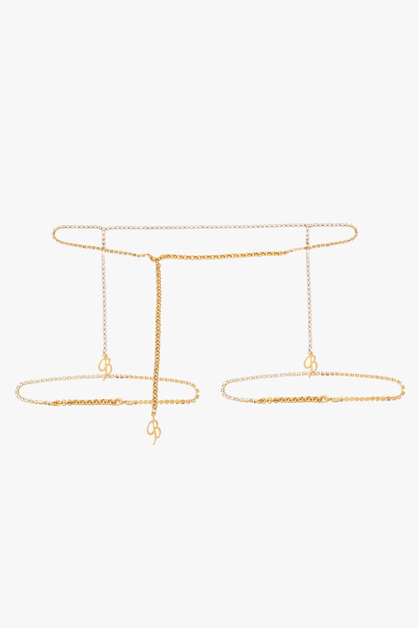 Gold-tone belt from Blumarine. Made of brass, this item has been spruced up with glossy crystals and logo applications and features an adjustable lobster clasp fastening.