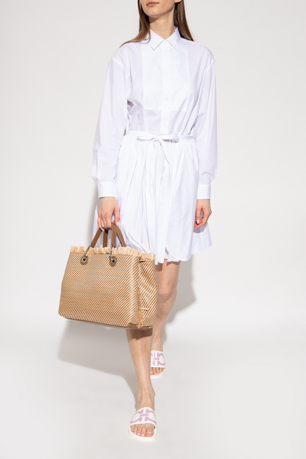 White slides from Salvatore Ferragamo. Made of rubber, this model sits on a white sole and showcases a pink Gancini logo.