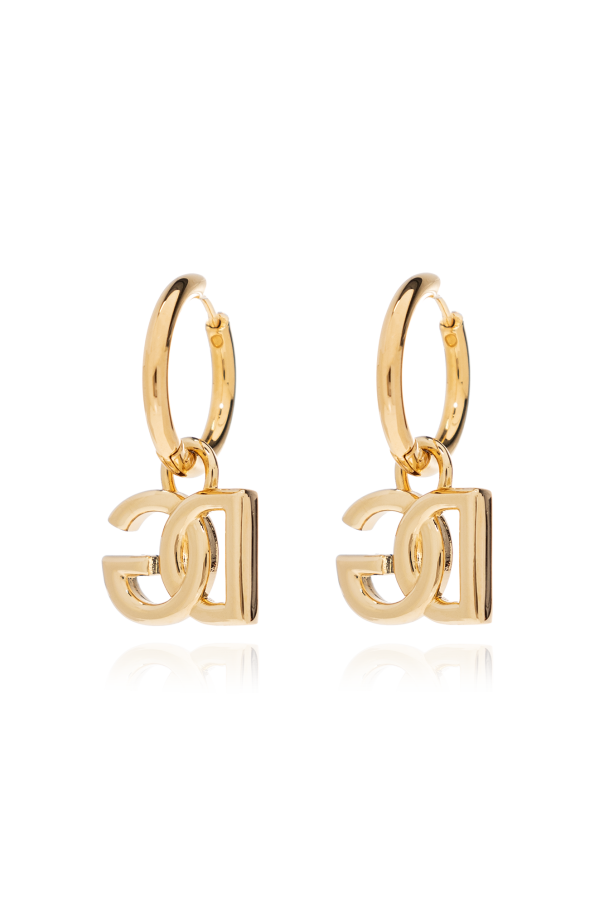 Gold-tone earrings from Dolce & Gabbana. Made of brass, they showcase logo pendants.