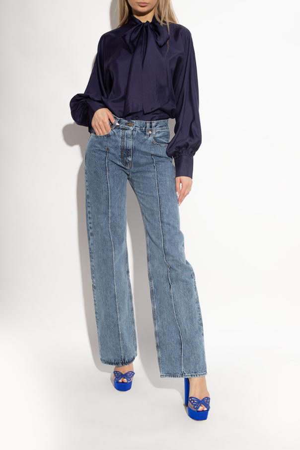 Dark blue ‘Farfalla’ platform sandals from Sophia Webster. Crafted from metallic leather and mesh and spruced up with glossy crystals, this model sits on a beige leather sole and showcases an adjustable buckle strap at the ankle and the brand\'s signature butterfly motif on the front.