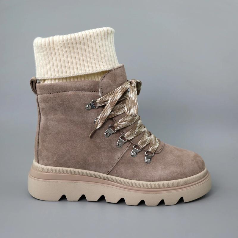 41 розмір 26 смТеплі зручні бежеві жіночі черевики сноубутси замшеві з хутром на тракторній