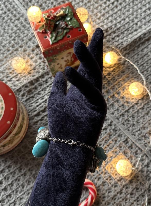 Массивным браслет с натуральным камнем говлит окрашенным под бирюзу и металлическими бусинами/шармами в этническом стиле. Длина изделия без учета застежки 20см.