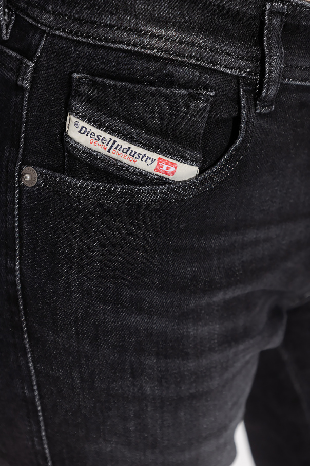 Black ‘2017 SLANDY L.27’ jeans from Diesel. Made of cotton, this tapered leg pair features a zip and button closure and five slip pockets.