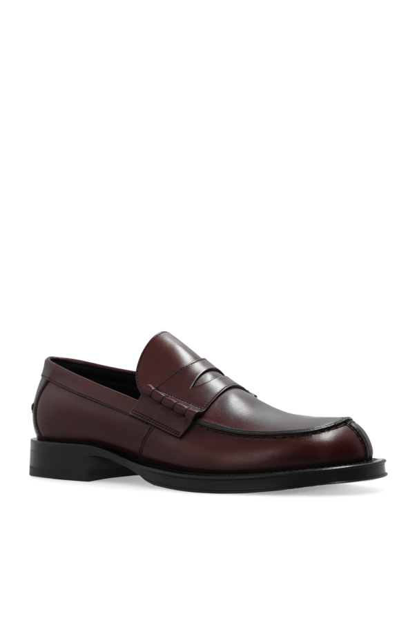 Dark brown \'Medley\' loafers from Lanvin. Made of leather, this model sits on a black and brown leather sole and features a decorative insert on the front.