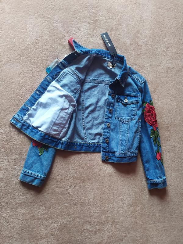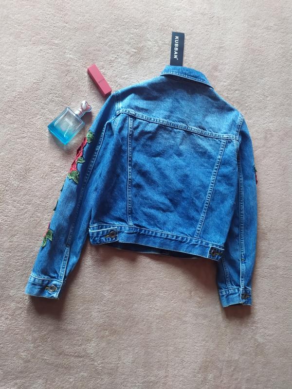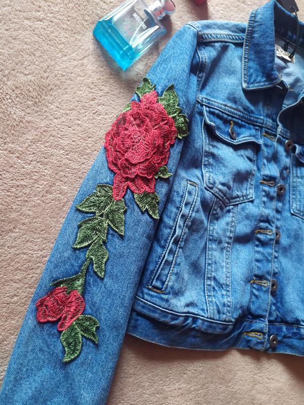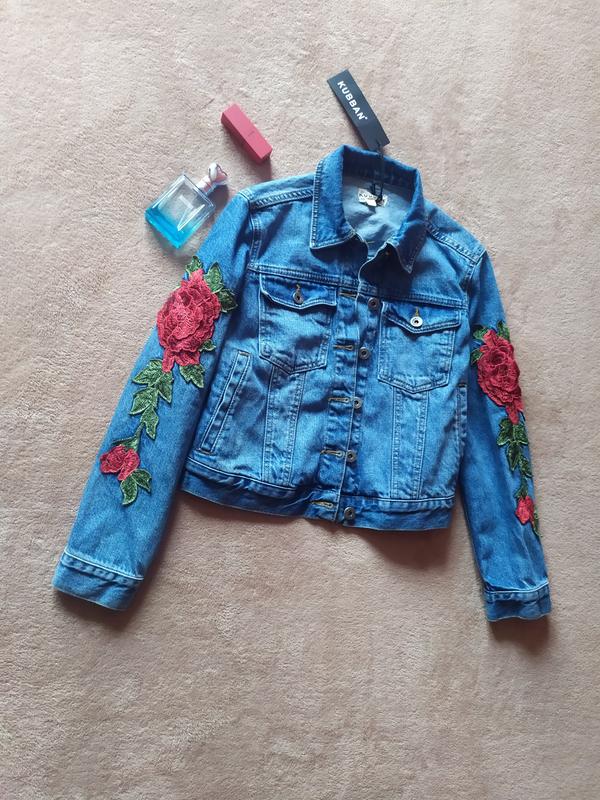 Шикарная качественная плотная джинсовая куртка с нашивками