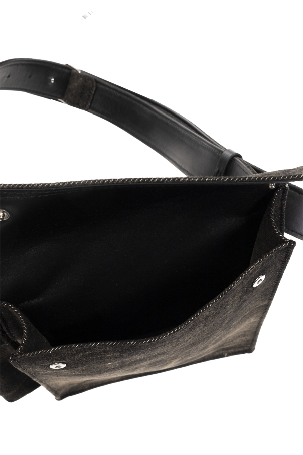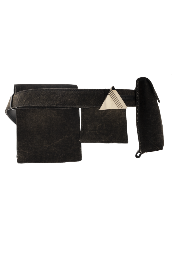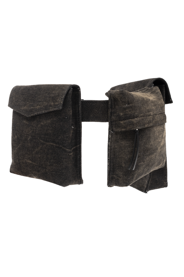 Dark grey belt with a vintage effect from The Attico. Made of denim and black calf leather, this item fastens with a silver-tone logo buckle and comes with three pouches: two have snap-fastened flaps and one has a zip closure.