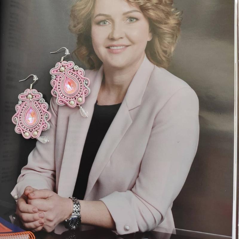 Лёгкие, нежные, привлекательные серьги цвета пыльной розы с ноткой романтики. Красивые стразы хамелеоны играют нежными красками на свету. Качественная фурнитура и материалы люкс класса.