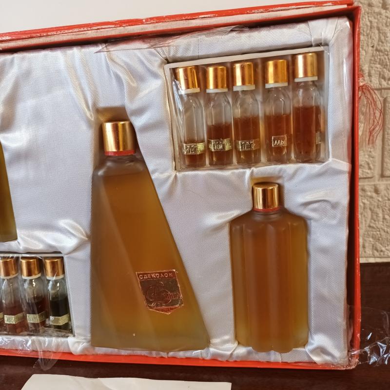 Вінтажний набір парфумів фабрики Червоні вітрила. Духами не користувалися. У маленьких флаконах природний убуток від часу. Набір дарували вчителю. Є гравірування. Коробка має пошкодження. Плівка місцями порваний. Все оригінал. Відправка новою поштою та укрпоштою за повної попередньої оплати на картку. Обміну та повернення немає!