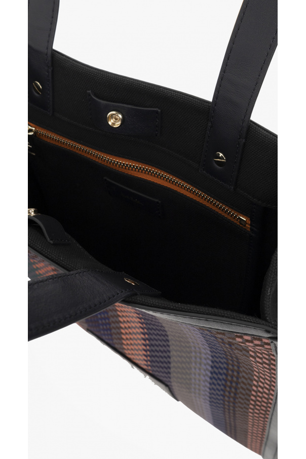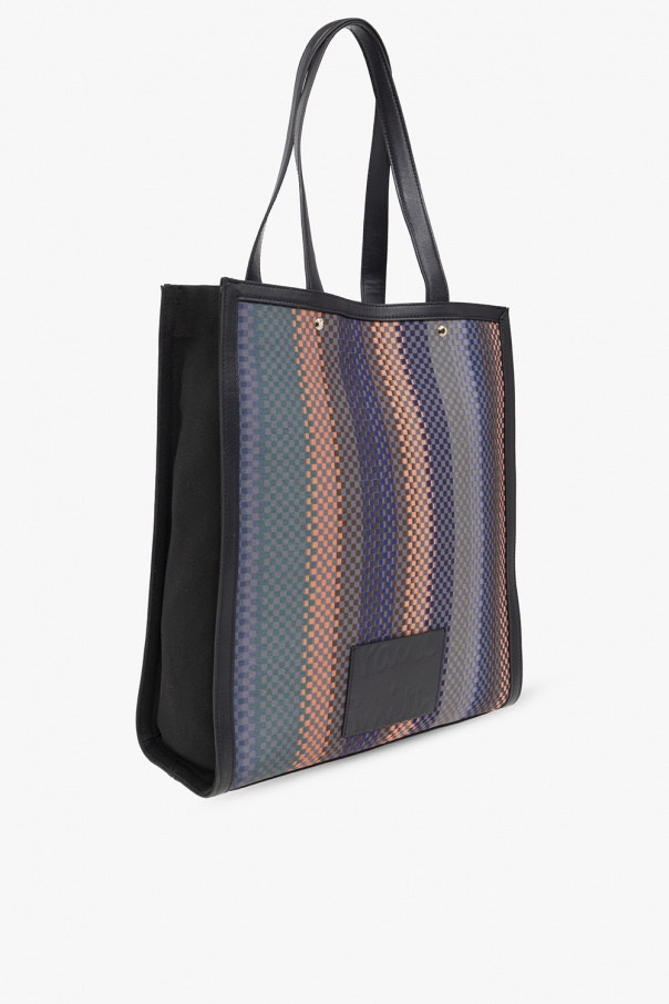 Multicoloured shopper bag from Paul Smith. Embellished with a stripe pattern and embossed with a logo motif, this design features a magnetic fastener, two half-round handles, gold-tone metal hardware and one internal compartment with a zip pocket.