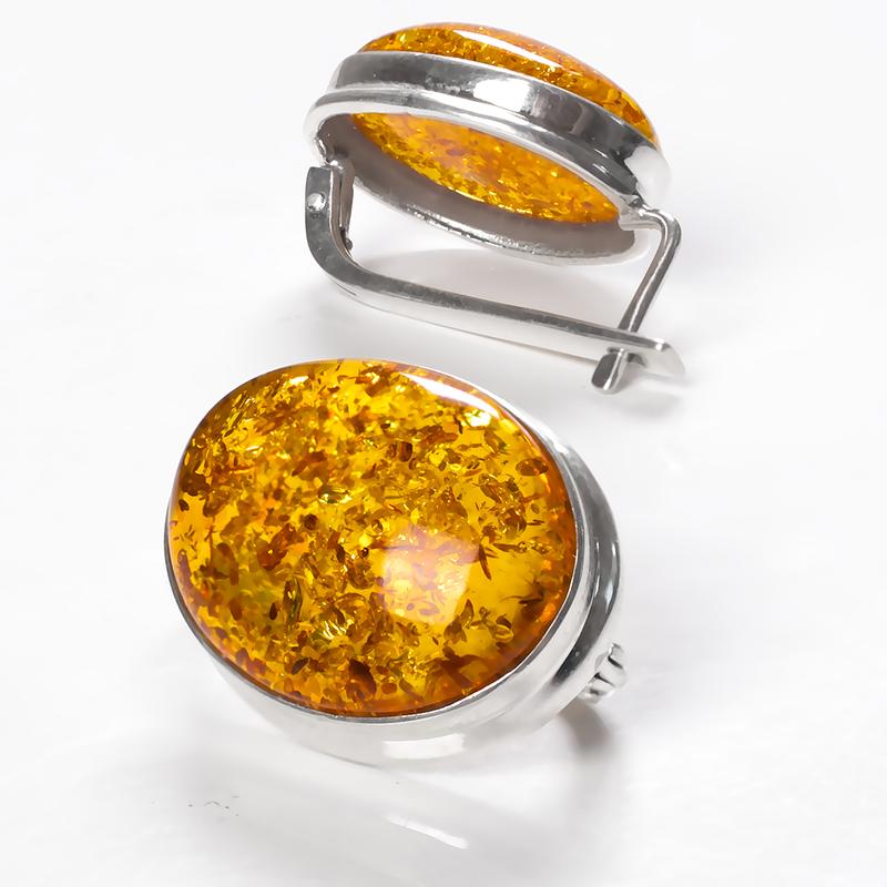 Серебряные серьги с натуральным янтарем.