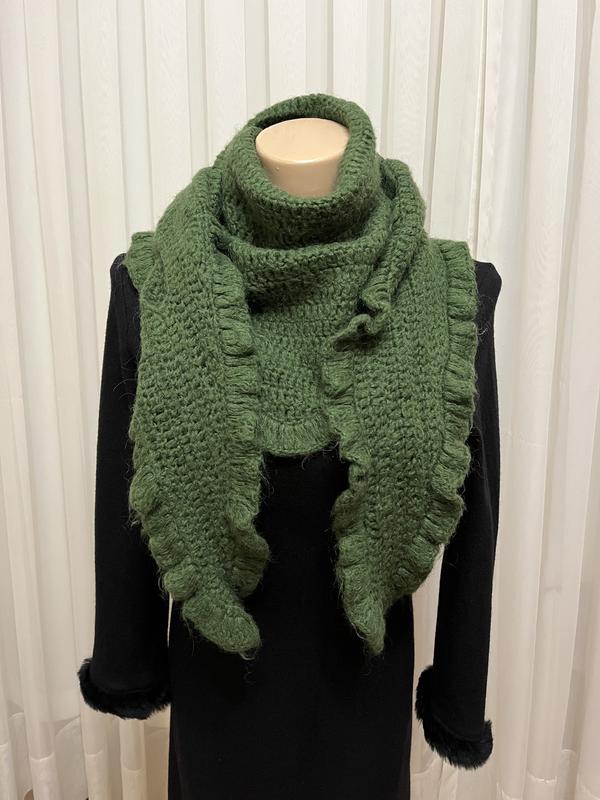 Бирка с составом срезана, я подожгла кусочек нити, запах шерсти. Аксессуары (платки, шарфы, и т.п) на официальном сайте данного бренда сделаны из натуральных тканей. Длина по горизонтали 170 см, длина по спинке (вертикально) 45 см.