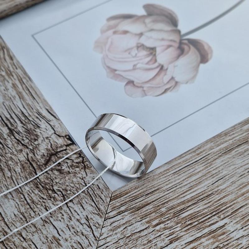 Обручка з білого золота американка гладка класична широка з фаскою по краях