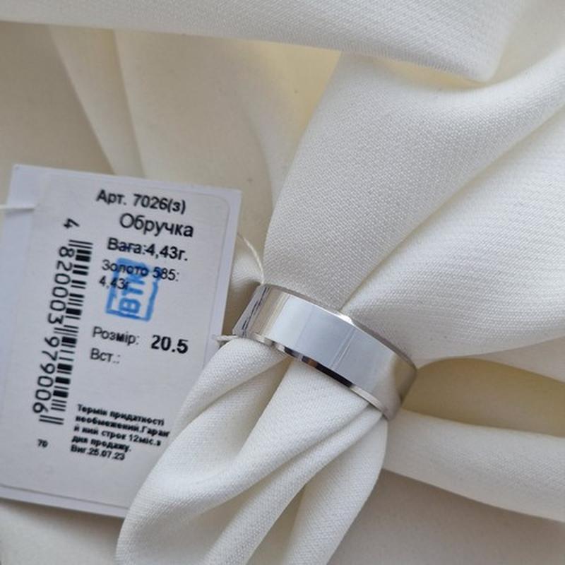 19,5, 20, 20,5, 21. Обручка виконана з білого золота 585 проби, щоб вона