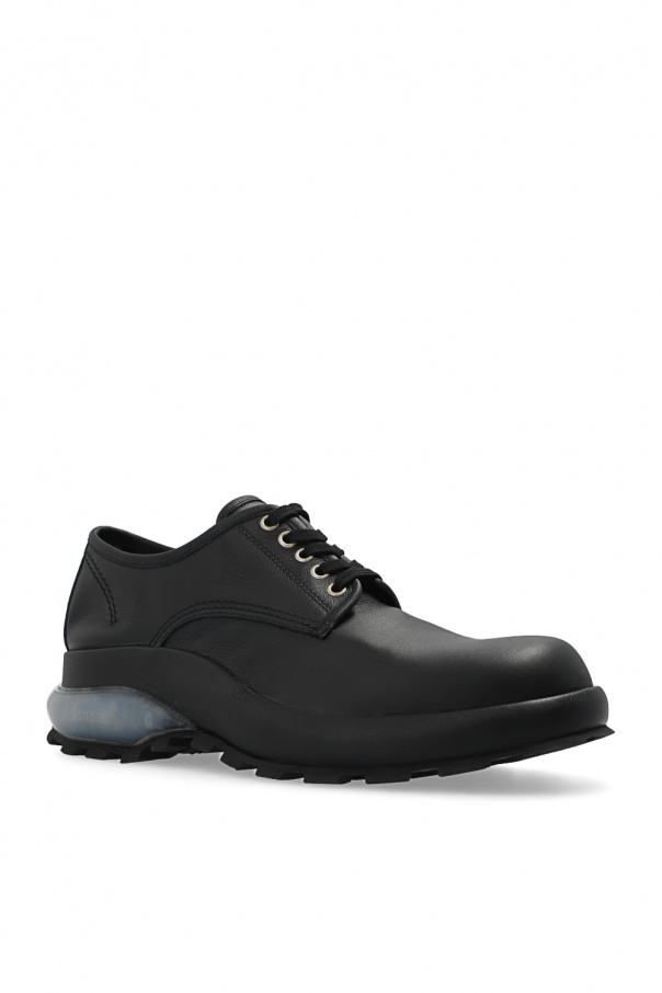 Black shoes from Jil Sander. Made of leather, this lace-up pair features an almond toe and black rubber sole.