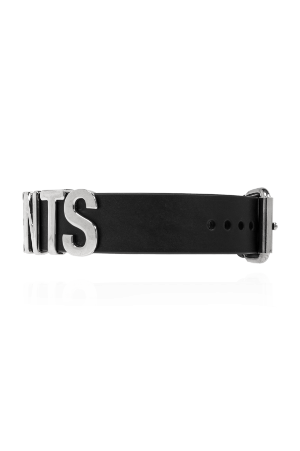 Introducing the Choker with Logo by the renowned fashion house, VETEMENTS. This exclusive accessory is a testament to modern luxury and unisex elegance, designed for those who value high-end street fashion. Crafted from premium black leather, this choker features a wide band that exudes sophistication. The focal point of the design is the prominent, gleaming metal inscription \"VETEMENTS\" in striking silver, ensuring the brand’s emblem remains the centerpiece of this exquisite piece. The choker is equipped with a sleek, adjustable metal clasp in a matching silver tone, offering both style and functionality. Its versatile design allows for a perfect fit on various neck sizes, making it a suitable choice for both men and women. This choker\'s bold and contemporary style is a signature of VETEMENTS, a collective of visionary designers who have been redefining fashion since 2009. Their androgynous, sharp lines and innovative use of color and print have captivated critics and fashion enthusiasts alike. Why should you buy this product? Exclusive and luxurious design with a prominent VETEMENTS logo Crafted from high-quality black leather Adjustable metal clasp for a customized fit Unisex appeal, suitable for both men and women Perfect accessory for modern, high-end street fashion