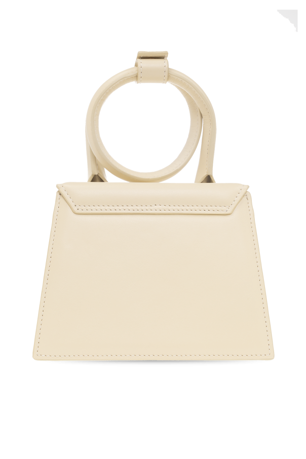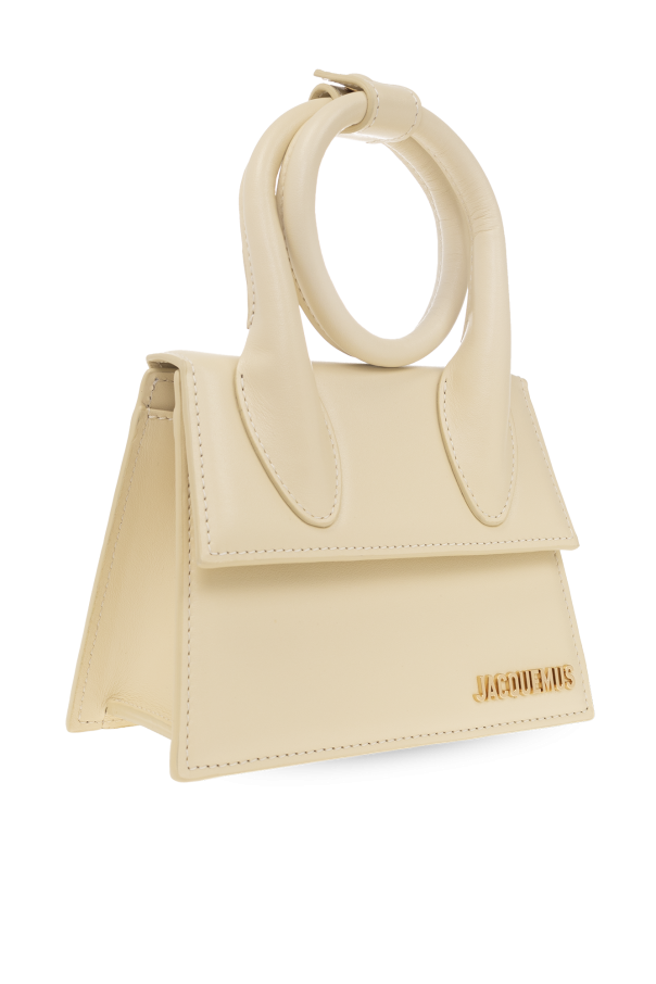 Cream ‘Le Chiquito Noeud’ shoulder bag from Jacquemus. Made of leather, this design features a magnetic snap and is decorated with a gold-tone logo detail. It is complete with a round, adjustable strap, detachable and adjustable strap, gold-tone metal hardware and one internal compartment with one card slot.