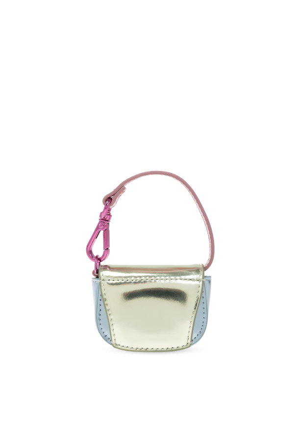 Introducing the \'1DR XXS\' wallet by Diesel, a marvel of design that redefines the essence of compact elegance. Crafted with an exterior of cowhide leather that gleams with a metallic, silver hue, this wallet is a symphony of sophistication and modernity. Its rectangular shape, softened by rounded edges, features a distinctive cutout filled with transparent plastic, creating an iconic \'D\' that speaks volumes of its heritage. The material\'s high gloss and smooth texture allow it to catch and reflect light, adding a mesmerizing metallic effect. Accented with details in varying shades of pink, including a detachable strap and metal elements like the clasp and strap attachments, it exudes a subtle femininity and luxury. The interior, lined with a durable fabric, proudly displays the Diesel logo, ensuring authenticity and quality. More than just a wallet, the \'1DR XXS\' offers the versatility of a miniature bag, thanks to its pink strap, allowing for an elegant transition from day to night. Its clasp closure secures your essentials, making it the perfect companion for the woman who appreciates functionality without compromising on style. Why Purchase This Product? Exclusive Design: Unique \'D\' cutout and metallic finish set it apart. Luxurious Materials: Crafted from high-quality cowhide leather and metal accents. Versatility: Functions as both a chic small wallet and a miniature bag. Elegance: Metal elements in pink metal add a touch of sophistication. Authenticity: Embellished with the Diesel logo, a testament to quality.