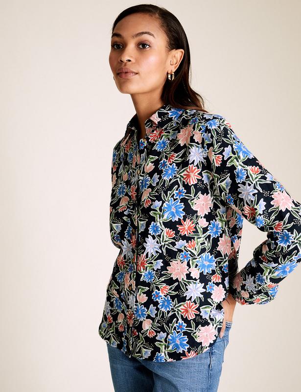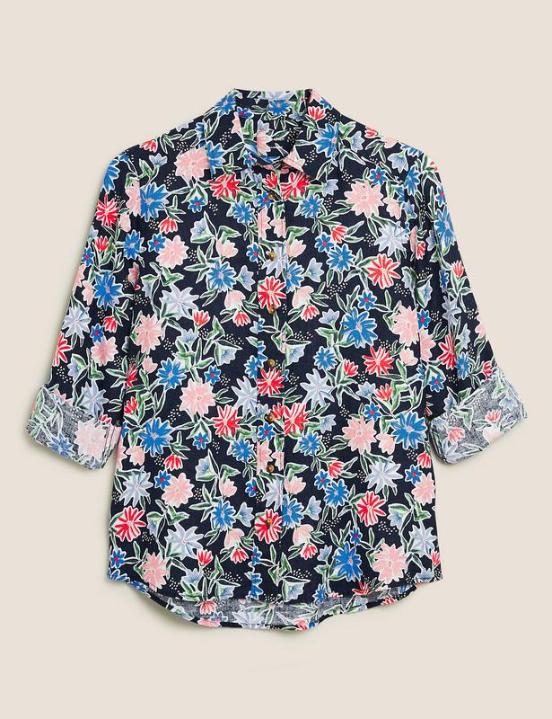 Pure Linen Floral Long Sleeve Shirt. 100% льон