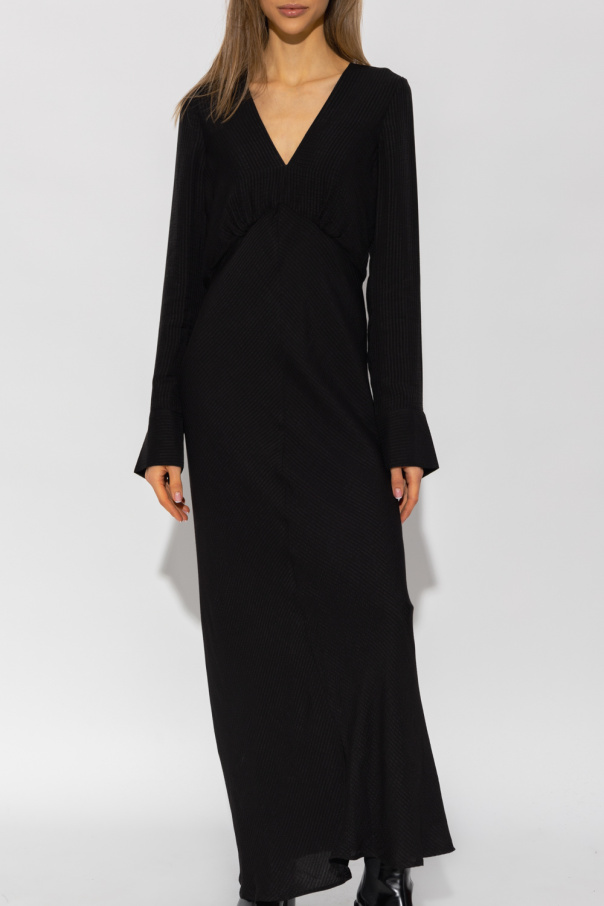 Black ‘Ilana’ dress from Birgitte Herskind. Fastened with a back zip, this V-neck design has long sleeves with buttoned cuffs.
