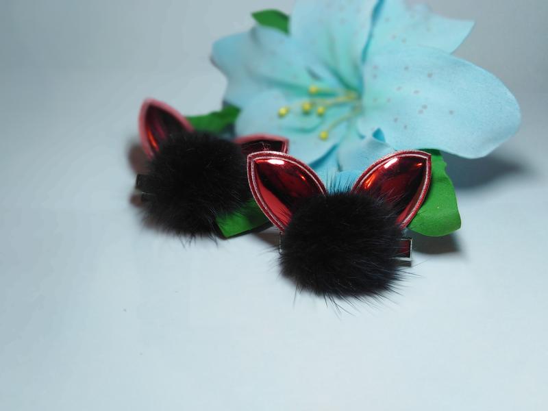 заколки ушки с норковым помпоном