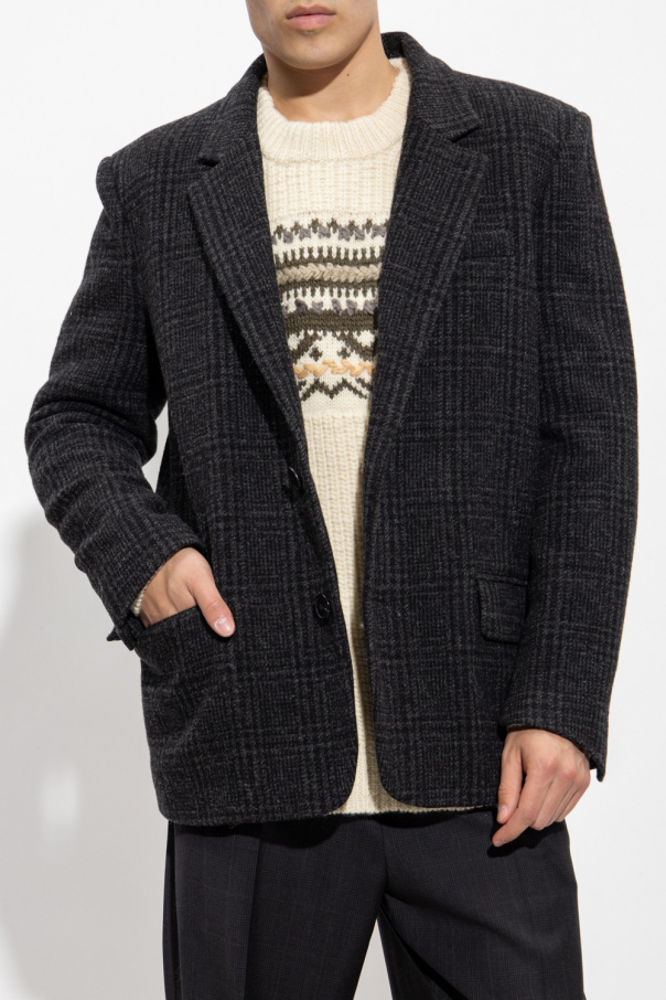 Dark grey ‘Fergus’ blazer from Isabel Marant. Crafted from wool, this garment features button fastenings, check pattern, notch lapels, two flap pockets, one slip pocket, single rear vent and long sleeves with buttoned cuffs.