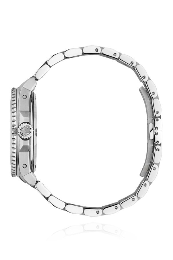 Silver-tone ‘Gucci Dive’ automatic watch from Gucci. This model features a stainless steel bracelet and 40mm case, a dial with the brand\'s signature bee and logo as well as sapphire glass with antireflective coating.