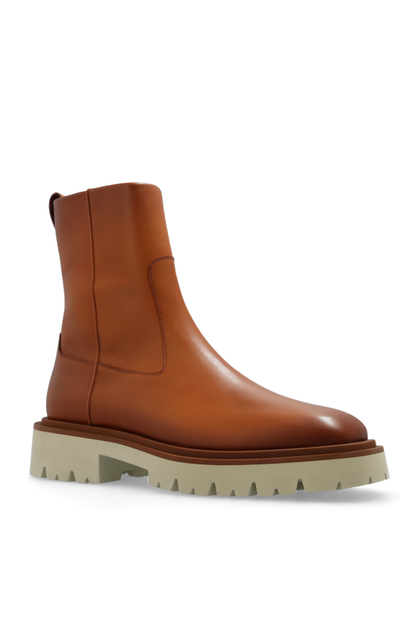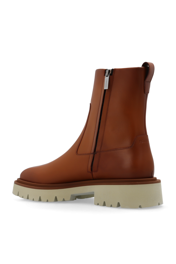 Brown ‘Fulvio’ ankle boots from FERRAGAMO. Made from smooth calf leather, this model sits on a light grey rubber sole and features a medium insole and zip detailing on the side.