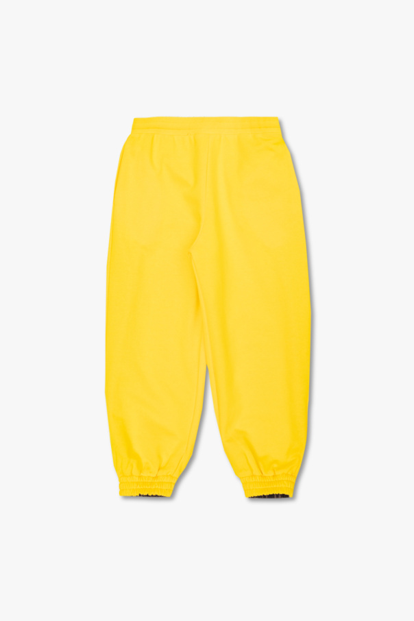 Reversible trousers in brown and black from Fendi Kids. Embellished with a monogram pattern, this pair features a drawstring waistband, two slip pockets, elasticated cuffs and a yellow cotton interior.