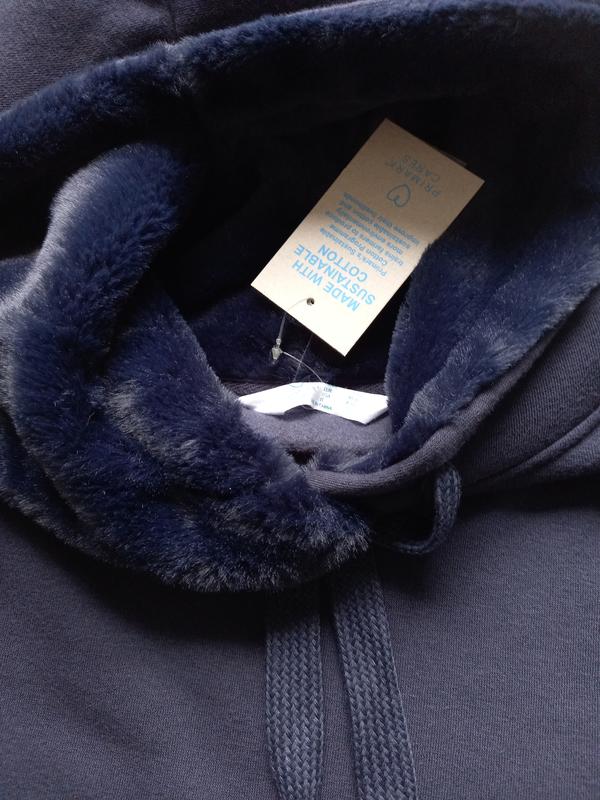 На последних двух фото виден фабричный дефект маленькая дырочка, можно с середины прихватить нитью, а можно и так носить. Состояние худи новый. Капюшон и карман из переда имеют теплый мех.